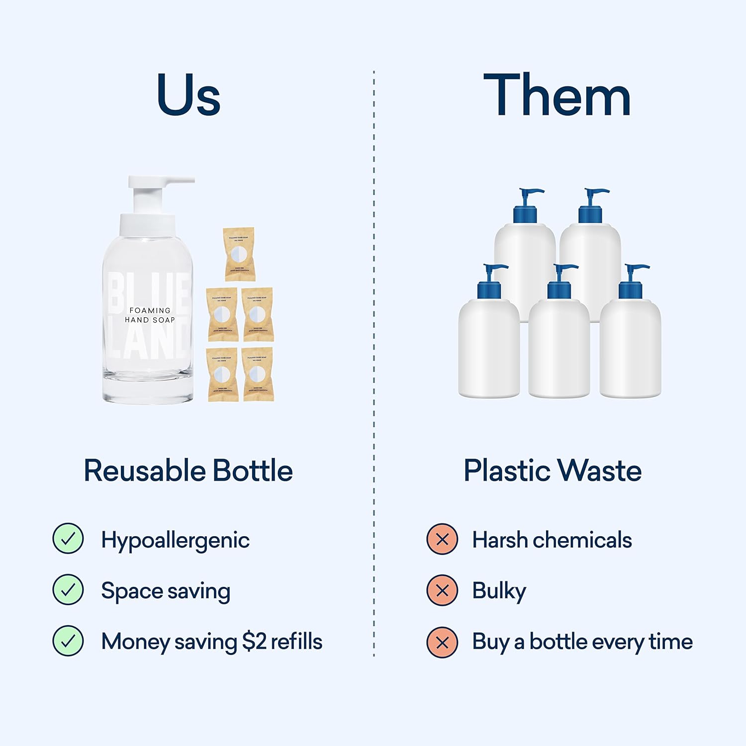 - Includes: 4 LIMITED EDITION Disney glass Forever Bottles and 8 Iris Agave Tablets. Each tablet makes 9oz of foaming hand soap.